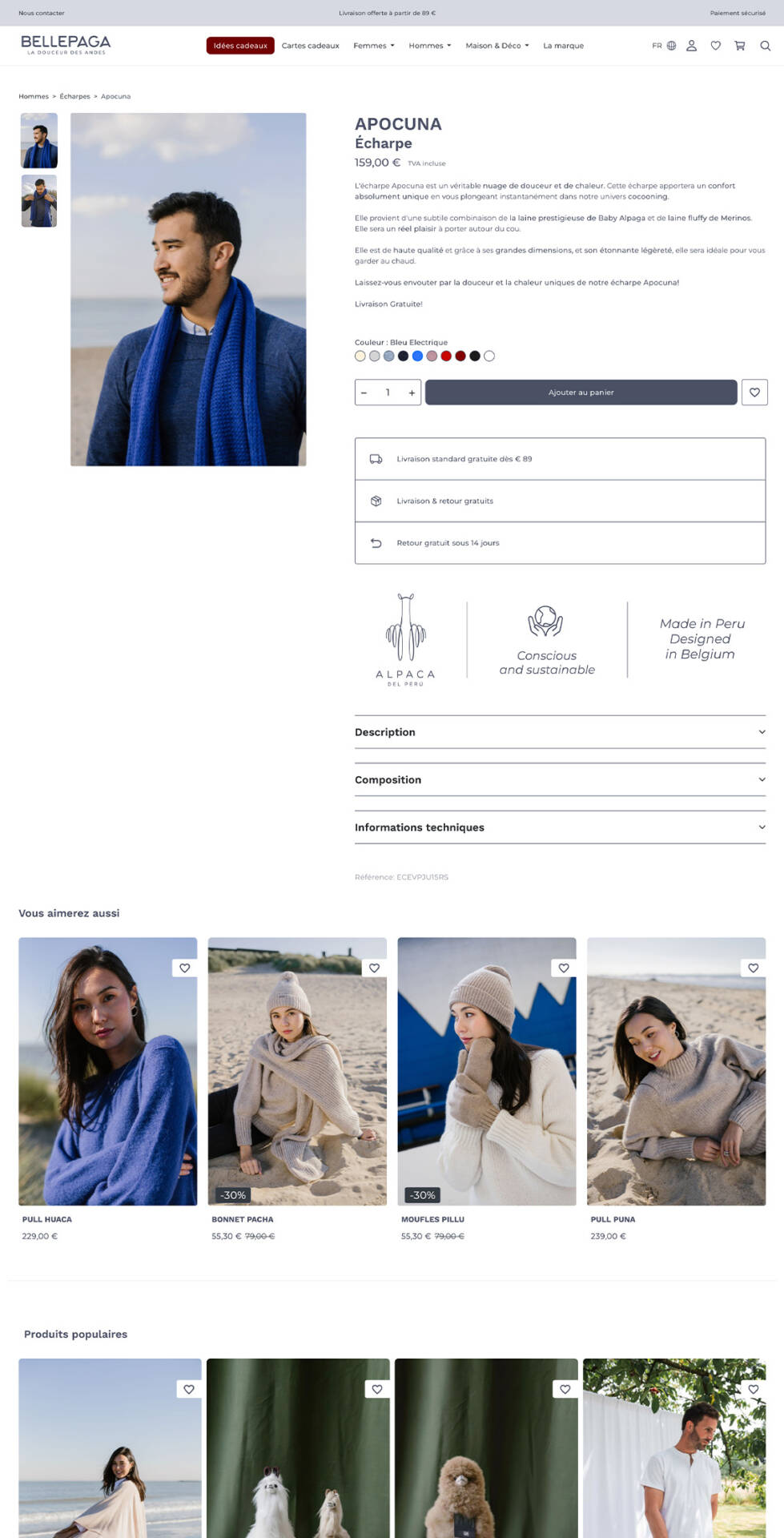 Site e-commerce sous PrestaShop 8 proposant des produits hauts de gamme en laine d’Alpaga.