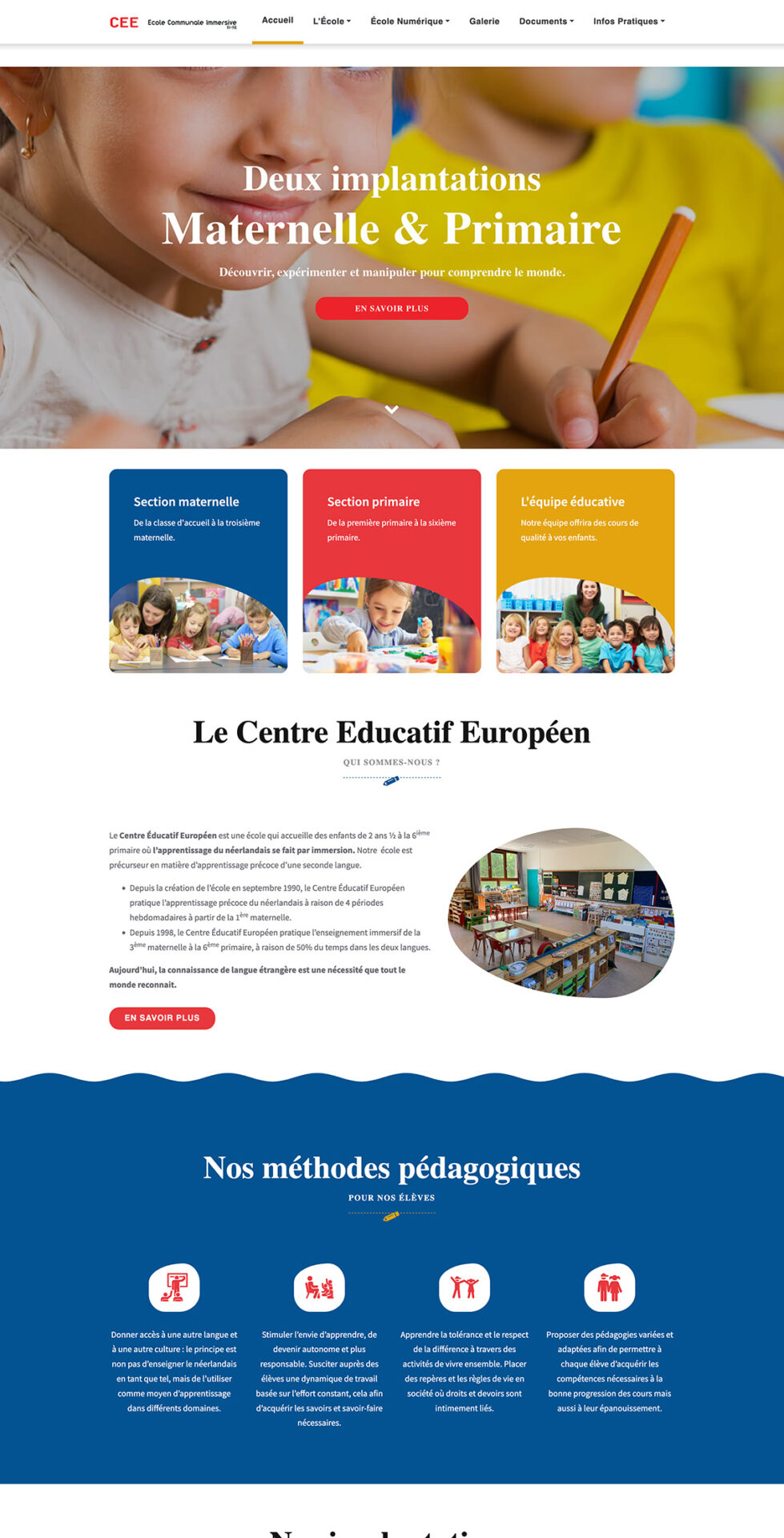 Le Centre Éducatif Européen est une école qui accueille des enfants de 2 ans ½ à la 6ième primaire où l’apprentissage du néerlandais se fait par immersion.