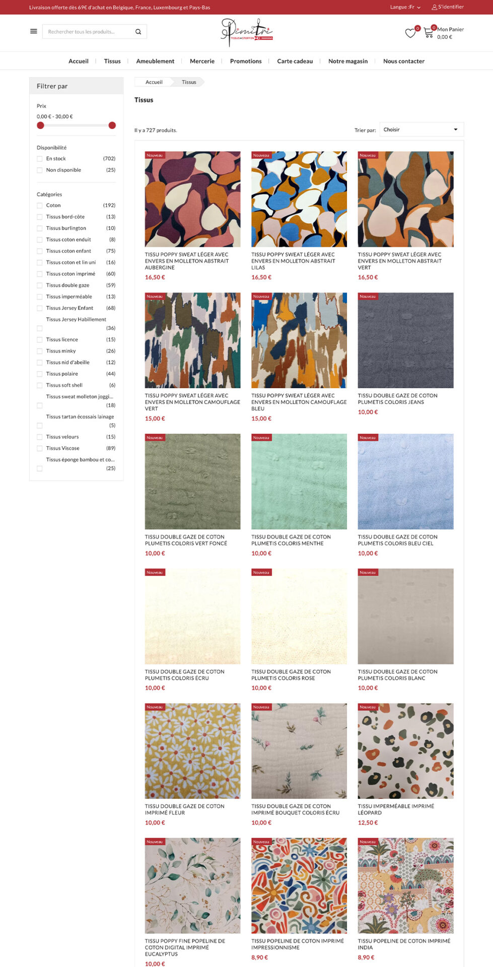 Site e-commerce proposant une large gamme de tissus et mercerie.